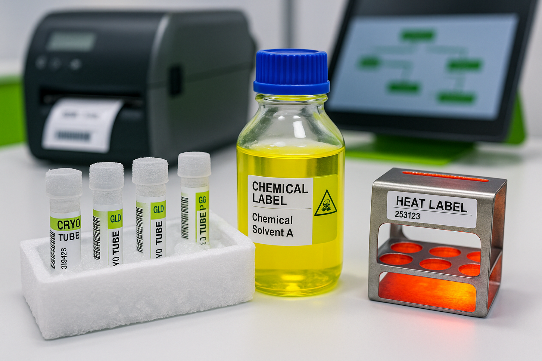 - Examples of labels withstanding extreme conditions (temperature, chemicals, cryo, etc...